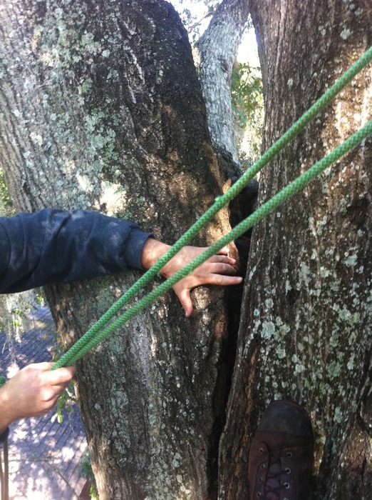 Large Split in Laurel Oak 40 ft. Above 2 Houses